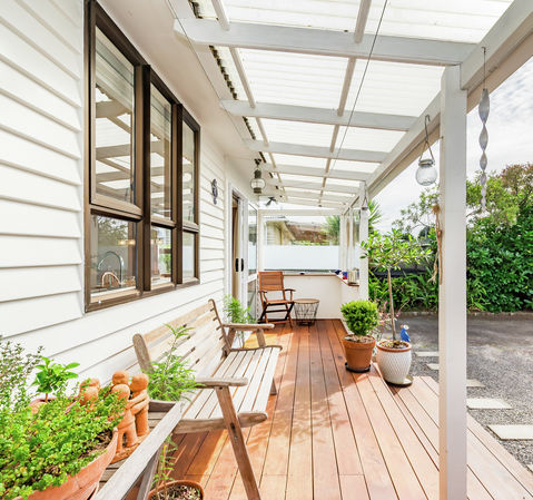A real highlight is the sheltered Kwila deck that runs along the back of the house - a peaceful, spot to relax with a wine or coffee, entertain friends, or soak up the sun.